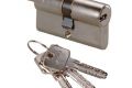 EuroCilindru pentru buton, asimetric, antidrill, antişperaclu, cama DIN, nichelat, chei amprentă
