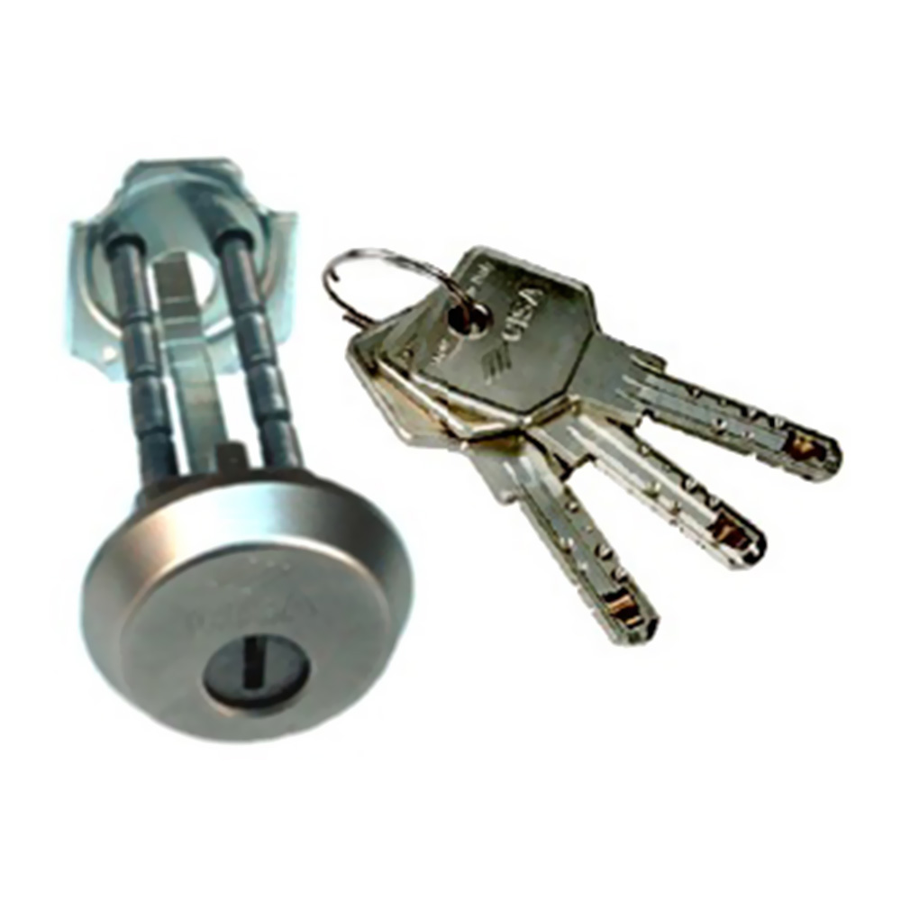 Caracteristici tehnice:- Cilindru detasabil cu rozeta de protectie nichelata, antidril si rezistenta la rupere- sistem cu 15 pini - corp de alama- rotitor de alama cu insertie cilindrica rezistenta la gaurire- pini din otel tratat (in rotitor)- driveri din otel tratat (in partea fixa a corpului cilindrului) - arcuri din otel inoxCHEI:- plate, reversibile- din aliaj nichel-argint- numerotate pe capul cheii- 2,4 mm. grosime- 0,48 mm. adancime- CHEILE POT FI DUPLICATE DOAR DE CISA Dotare standard:- Suruburi de fixare- Instructiuni de utilizare si intretinere- 3 chei cod CISA 1.00700.02.0- CARTELA SECURITATELa cerere:- KA, MK, GMKFinisaje:- STANDARD: alama nichelata (fin. 12)- LA CERERE: alama lacuita (fin. 66)