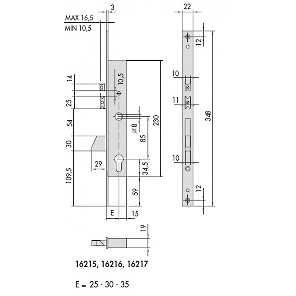 Date tehnice:-Carcasa din otel zincat-Front de inox-Zavoare nichelate-Zavor si bolt memorie reversibil-Zavor inferior si superior-Zavor si bolt memorie reglabile:10.5 - 16.5 mm. -Set rozete nylon CISA Cod 1.06012.01.0-Tensiune de alimentare:12 V curent alternativ CE 3,1ADotare standard:-Set distantieri front CISA Cod 1.06141.65.0-Suruburi de fixare broasca si cilindru-Instructiuni montaj, utilizareLa cerere:-Contraplaca specifica-Rozete protectie cilindru CISA Cod 1.06460.00.0Posibilitati de montare:0 =pentru usi de dreapta si stanga, cu deschidere la interior si exteriorCilindrul se va achizitiona separat si va fi seria:seria 08710 or 0E300 (ASIX)Acest produs se poate folosi cu BUTON FIX: