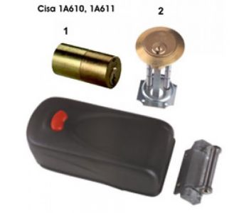 Ansamblul yalei si al contraplacii sunt incorporate intr-ocarcasa de protectie de otel (mascand complet suruburilesi firele electrice).Componentele separate ale unei yale aplicate conventionalesunt transformate intr-o structura unitara, monobloc, sigura.Broasca este reversibila, si backset-ul poate fi reglat intre 50 si 80mm.Autoreglare a sistemului contraplacii.Functia permanent deschis, poate fi activata numai pentru varianteleechipate la interior cu cilindru si buton (1A630, 1A631, 1A731).POSIBILITATI DE MONTAJ:CAZURILE: usa cu deschidere la interior si exterior, de dreapta sau de stangaPentru usi de lemn:1A610 - Este dotata cu cilindru exterior detasabil "2" si buton pe interior1A611 - Este dotata cu cilindru exterior fix "1" si buton pe interiorTestate pentru 2000 kgf si 1milion cicluri inchidere. Instructiuni de utilizare pentru yala aplicata CISA mod.1A610, 1A611, 1A630, 1A631, 1A721, 1A731. 1. Schimbarea mainii si reglarea backset-ului ( distanta de la marginea usii la cheie).Yala este reversibila si poate fi instalata pe usi care se deschid pe dreapta sau pe stanga. Backset-ul poate fi ajustat de la 50 la 80 mm. Verifica partea pe care este usa referindu-te la fig. 1.Pentru usile care se deschid catre exterior instalati yala pe suprafata externa a ramei usii (fig. 2), sau pe interiorul montantului fix, daca este suficient de lat (fig.3).Daca mana si backset-ul nu sunt cele setate de fabrica, (de dreapta, 70mm) :a) desfaceti carcasa, introducand o surubelnita intre montantul arcului si placa (fig.4).b) scoateti platoul cilindrului (A) de pe platoul B, rotiti-l si asezati-l din nou conform figurii 5, pentru mana dreapta sau stanga, tinand cont de valoarea backset-ului inscriptionat pe platoul B. Piesa rosie de plastic de pe platoul A (cama) trebuie sa fie pozitionata conform figurii 6 la modelele cu dublu cilindru (1A610, 1A630).c) inchideti carcasa si asigurati-va ca platoul cilindrului nu s-a deplasat, conform fig.7. 2. Instalarea :a) pentru 1A721 si 1A731, sudati pe usa platoul de prefixare al yalei si cel al contraplacii yalei , aliniindu-le la acelasi nivel cu montantii, astfel ca sagetile de pe platouri sa corespunda una cu alta-fig.8.Verificati ca distanta dintre cei doi montanti sa fie intre 1,5 si 11,5mm, aceasta fiind distanta compensata de cursa pivotului oscilant.b) perforati montantul portii corespunzator cu gaurile de pe pe platoul de prefixare al yalei si treceti cablul de alimentare a bobinei prin gaura de pe platoul de prefixare.c) instalati yala si treceti cablul de alimentare spre bobina prin gaura platoului yalei, apoi fixati-o cu suruburi M5x14 de placa de prefixare.d) fixati contraplaca cu sageata spre yala, apoi prindeti-o cu suruburi M5x14 de placa de prefixare.e) pentru modelele 1A610, 611,630, 631, fara platouri de prefixare, fixati contraplaca la nivel cu montantul, si apoi corespunzator yala pe usa folosind suruburi de 5x40mm, apoi treceti cablul prin gaura respectiva a platoului yalei, plasand boltul de inchidere cu miscare rotativa orientat pe inaltime la centrul contraplacii.Verificati daca axele gaurilor yalei pentru holzsuruburile de fixare si cele ale contraplacii sunt pe aceeasi linie.Datorita contraplacii cu ax mobil, distanta dintre axele gaurilor din extremitatea yalei si marginea contraplacii poate varia intre 18-28mm(optim 21,5) sau intre 40-50mm(optim43,5) intre axele gaurilor, sau intre 1,5-11,5mm (optim 5mm) intre usa si montant (fig.9). Pentru mod.1A610 si 1A630 asigurati-va ca in timp ce instalati cilindrul cama lui de actionare este inserata in excentric minim 3mm dar nu mai mult de 10mm (se taie ce este in exces- fig. 10).Pentru ca yala sa functioneze in conditii bune, partea mobila ( usa) trebuie sa fie la acelasi nivel cu montantul, daca nu, se va remedia adaugand un distantier corespunzator sub contraplaca (fig. 11).Nu este indicat sa montati yala pe porti fara ca una sa fie fixa.Daca nu poate fi fixata in cele patru suruburi prestabilite, se vor face gauri aditionale de prindere(fig.12) 3. Cablarea:a) conectati firele la bobina trecand pe dedesubtul placilor apoi strangeti suruburile.Ca precautie, firele trebuie introduse prin gaura opusa, si trebuie sa traverseze zavorul ocolindu-l si nu direct pe deasupra (fig.13). 4. Schimbarea modului de deschidereSunt posibile doua moduri de deschidere :A: "Deschidere automata", cand usa este deschisa la propriu de rotatia limbii zavorului.B: "Ready to opening" , zavorul este deschis, permite deschiderea usii dar usa ramane fizic in pozitia inchisa si usa trebuie impinsa ca sa se poata deschide. Zavorul lucreaza in modul A standard pentru trecerea in modul B trebuie sa faceti urmatoarele:a) inchideti usab) introduceti o surubelnita cruce de 4mm in gaura 2, asigurandu-va ca a trecut de partea cealalta a zavorului.(fig 14, 15).c) deschideti usa cu cheia sau cu butonul, apoi rotiti manual zavorul pana ajunge in pozitia deschis (sau deschideti usa), in timpul deschiderii zavorului se va percepe o usoara frecare si un clic final.d) scoateti surubelnita si modul B este instalat.Pentru a ne intoarce la modul A, deschidere automata, procedati in felul urmator :a) deschideti usab) introduceti surubelnita in gaura 1, asigurandu-va ca a iesit capatul pe partea cealalta.c) inchideti usad) scoateti surubelnita si modul A este activat 5. Fixarea carcasei de protectieCu usa deschisa, puneti carcasa incepand cu partea cu butonul, prin rotatie asigurati-va ca acesta intra in locas si suruburile in gaurile de fixare de pe placa-fig 16a, b, c.Strangeti piulitele cu imbusul de 4mm. 6. Eventuale probleme :Daca usa e deschisa si zavorul este inchis manual, si yala este in modul automat, se deschide prin simpla apasare a butonului.Daca este in modul B si zavorul e inchis cu usa deschisa, se apasa butonul si se deschide zavorul prin impingere cu o surubelnita. 7. Modul "permanent deschis" -hold open- (la 1A630, 1A631,1A731)Pentru activare tineti apasat butonul rosu si blocati-l astfel intorcand cheia in sensul acelo