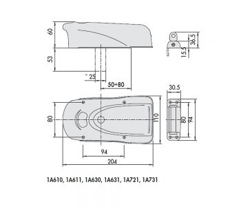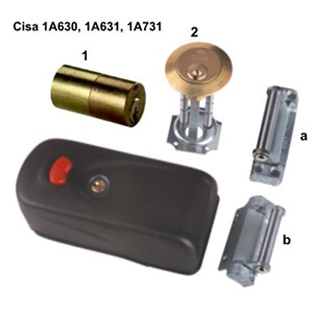 Ansamblul yalei si al contraplacii sunt incorporate intr-ocarcasa de protectie de otel (mascand complet suruburilesi firele electrice).Componentele separate ale unei yale aplicate conventionalesunt transformate intr-o structura unitara, monobloc, sigura.Broasca este reversibila, si backset-ul poate fi reglat intre 50 si 80mm.Autoreglare a sistemului contraplacii.Functia permanent deschis, poate fi activata numai pentru variantelecare au la interior cilindru si buton (1A630, 1A631, 1A731).POSIBILITATI DE MONTAJ:CAZURILE: usa cu deschidere la interior si exterior, de dreapta sau de stangaPentru usi de lemn, cu contraplaca "b":1A630 - Este dotata cu cilindru exterior detasabil "2", iar la interior cu cilindru si buton.1A631 - Este dotata cu cilindru exterior fix "1", iar la interior cu cilindru si buton.Pentru usi de metal, cu contraplaca "a":1A731 - Este dotata cu cilindru exterior fix "1" si cu cilindru si buton la interior. Suport si distantier pentru contraplaca, sudabile.Testate pentru 2000 kgf si 1milion cicluri inchidere. Instructiuni de utilizare pentru yala aplicata CISA mod.1A610, 1A611, 1A630, 1A631, 1A721, 1A731. 1. Schimbarea mainii si reglarea backset-ului ( distanta de la marginea usii la cheie).Yala este reversibila si poate fi instalata pe usi care se deschid pe dreapta sau pe stanga. Backset-ul poate fi ajustat de la 50 la 80 mm. Verifica partea pe care este usa referindu-te la fig. 1.Pentru usile care se deschid catre exterior instalati yala pe suprafata externa a ramei usii (fig. 2), sau pe interiorul montantului fix, daca este suficient de lat (fig.3).Daca mana si backset-ul nu sunt cele setate de fabrica, (de dreapta, 70mm) :a) desfaceti carcasa, introducand o surubelnita intre montantul arcului si placa (fig.4).b) scoateti platoul cilindrului (A) de pe platoul B, rotiti-l si asezati-l din nou conform figurii 5, pentru mana dreapta sau stanga, tinand cont de valoarea backset-ului inscriptionat pe platoul B. Piesa rosie de plastic de pe platoul A (cama) trebuie sa fie pozitionata conform figurii 6 la modelele cu dublu cilindru (1A610, 1A630).c) inchideti carcasa si asigurati-va ca platoul cilindrului nu s-a deplasat, conform fig.7. 2. Instalarea :a) pentru 1A721 si 1A731, sudati pe usa platoul de prefixare al yalei si cel al contraplacii yalei , aliniindu-le la acelasi nivel cu montantii, astfel ca sagetile de pe platouri sa corespunda una cu alta-fig.8.Verificati ca distanta dintre cei doi montanti sa fie intre 1,5 si 11,5mm, aceasta fiind distanta compensata de cursa pivotului oscilant.b) perforati montantul portii corespunzator cu gaurile de pe pe platoul de prefixare al yalei si treceti cablul de alimentare a bobinei prin gaura de pe platoul de prefixare.c) instalati yala si treceti cablul de alimentare spre bobina prin gaura platoului yalei, apoi fixati-o cu suruburi M5x14 de placa de prefixare.d) fixati contraplaca cu sageata spre yala, apoi prindeti-o cu suruburi M5x14 de placa de prefixare.e) pentru modelele 1A610, 611,630, 631, fara platouri de prefixare, fixati contraplaca la nivel cu montantul, si apoi corespunzator yala pe usa folosind suruburi de 5x40mm, apoi treceti cablul prin gaura respectiva a platoului yalei, plasand boltul de inchidere cu miscare rotativa orientat pe inaltime la centrul contraplacii.Verificati daca axele gaurilor yalei pentru holzsuruburile de fixare si cele ale contraplacii sunt pe aceeasi linie.Datorita contraplacii cu ax mobil, distanta dintre axele gaurilor din extremitatea yalei si marginea contraplacii poate varia intre 18-28mm(optim 21,5) sau intre 40-50mm(optim43,5) intre axele gaurilor, sau intre 1,5-11,5mm (optim 5mm) intre usa si montant (fig.9). Pentru mod.1A610 si 1A630 asigurati-va ca in timp ce instalati cilindrul cama lui de actionare este inserata in excentric minim 3mm dar nu mai mult de 10mm (se taie ce este in exces- fig. 10).Pentru ca yala sa functioneze in conditii bune, partea mobila ( usa) trebuie sa fie la acelasi nivel cu montantul, daca nu, se va remedia adaugand un distantier corespunzator sub contraplaca (fig. 11).Nu este indicat sa montati yala pe porti fara ca una sa fie fixa.Daca nu poate fi fixata in cele patru suruburi prestabilite, se vor face gauri aditionale de prindere(fig.12) 3. Cablarea:a) conectati firele la bobina trecand pe dedesubtul placilor apoi strangeti suruburile.Ca precautie, firele trebuie introduse prin gaura opusa, si trebuie sa traverseze zavorul ocolindu-l si nu direct pe deasupra (fig.13). 4. Schimbarea modului de deschidereSunt posibile doua moduri de deschidere :A: "Deschidere automata", cand usa este deschisa la propriu de rotatia limbii zavorului.B: "Ready to opening" , zavorul este deschis, permite deschiderea usii dar usa ramane fizic in pozitia inchisa si usa trebuie impinsa ca sa se poata deschide. Zavorul lucreaza in modul A standard pentru trecerea in modul B trebuie sa faceti urmatoarele:a) inchideti usab) introduceti o surubelnita cruce de 4mm in gaura 2, asigurandu-va ca a trecut de partea cealalta a zavorului.(fig 14, 15).c) deschideti usa cu cheia sau cu butonul, apoi rotiti manual zavorul pana ajunge in pozitia deschis (sau deschideti usa), in timpul deschiderii zavorului se va percepe o usoara frecare si un clic final.d) scoateti surubelnita si modul B este instalat.Pentru a ne intoarce la modul A, deschidere automata, procedati in felul urmator :a) deschideti usab) introduceti surubelnita in gaura 1, asigurandu-va ca a iesit capatul pe partea cealalta.c) inchideti usad) scoateti surubelnita si modul A este activat 5. Fixarea carcasei de protectieCu usa deschisa, puneti carcasa incepand cu partea cu butonul, prin rotatie asigurati-va ca acesta intra in locas si suruburile in gaurile de fixare de pe placa-fig 16a, b, c.Strangeti piulitele cu imbusul de 4mm. 6. Eventuale probleme :Daca usa e deschisa si zavorul este inchis manual, si yala este in modul automat, se deschide prin simpla apasare a butonului.Daca este in modul B si zavorul e inchis cu usa deschisa, se 