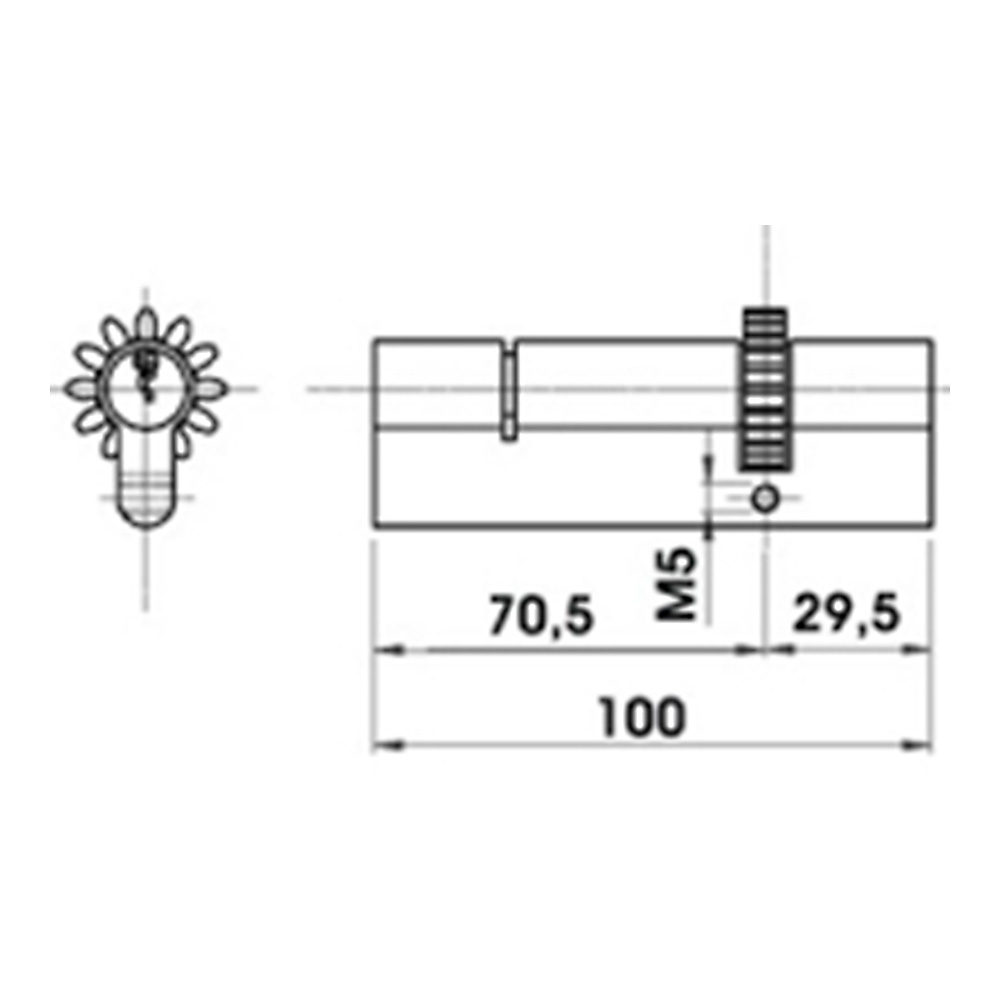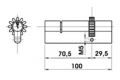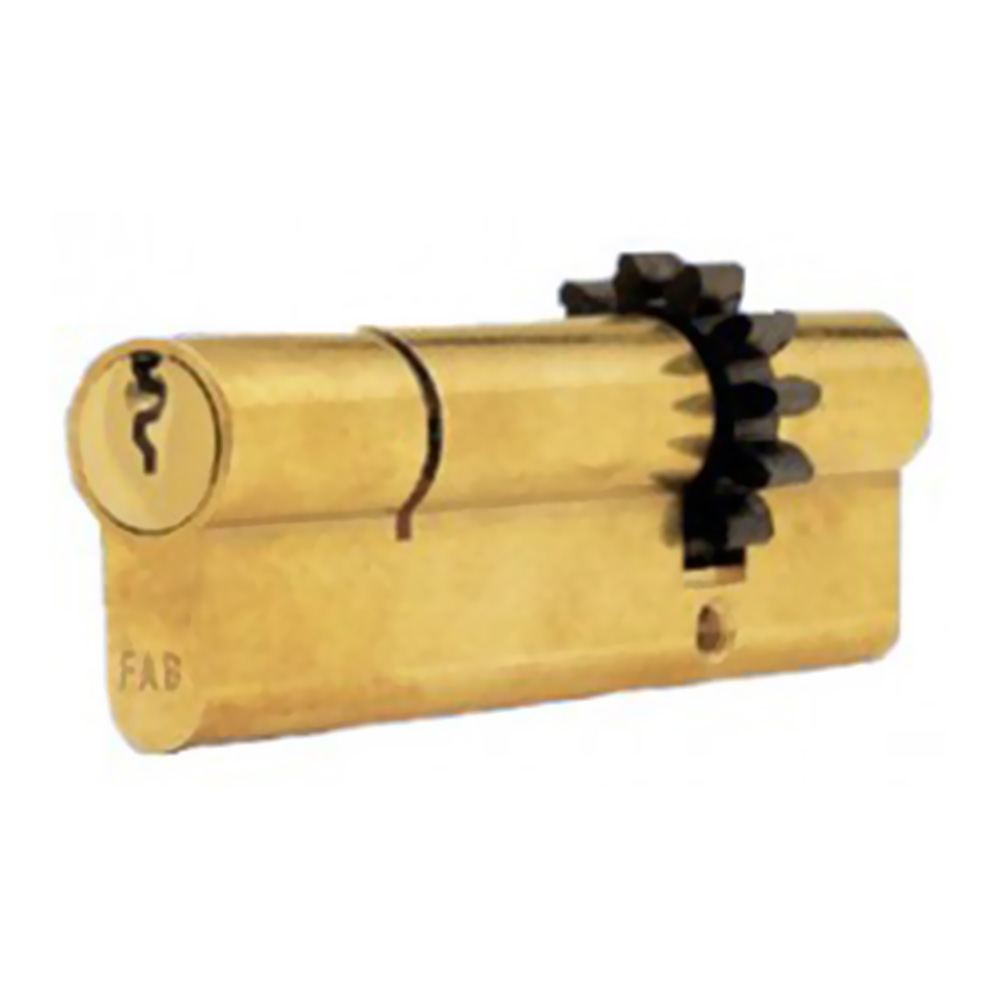 Cilindru - Pentru zavorul FAB cod 1550 sau 1551- intrarea cheii este excentrica, astfel cilindrul este protejatla deschiderea cu speraclul- odata introdus in broasca si fixat, cilindrul este protejatde armaturile de siguranta R 3 impotriva gauririi.- in locul camei uzuale, acesta este prevazut cu un pinion cu 12 dinti care controleaza cele doua bare solide de blocare a a usii,scotandu-le in afara sau retragandu-le in ambele laturi ale usii.- este dotat cu 6 chei FAB 4105
