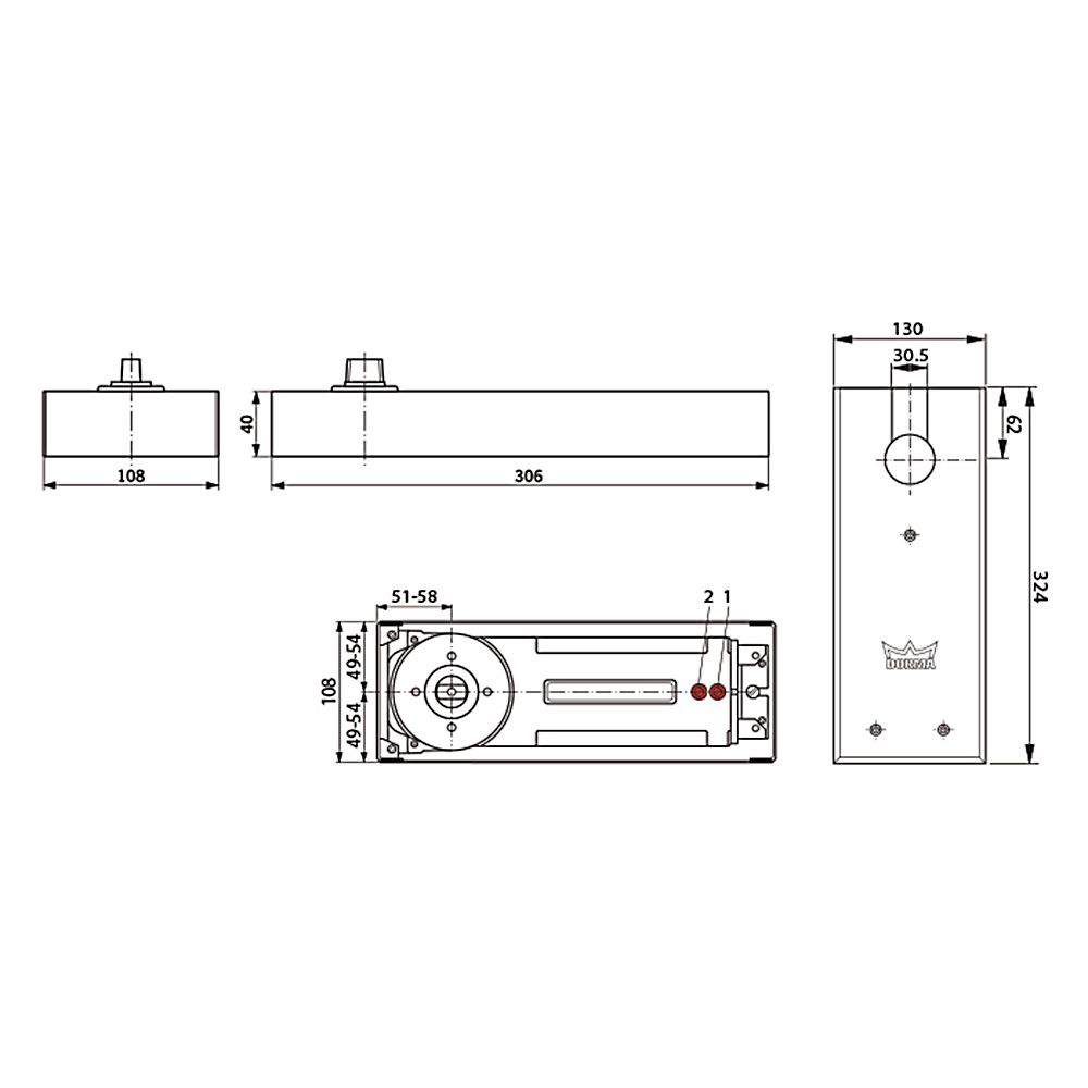 Pentru usi standard si de exterior pana la 950 mm (EN 3)/ pana la 1100 mm (EN 4)Viteza de inchidere a usii reglabila din valvele de reglaj.Hold open la 90 grade si 105 grade - optional.
