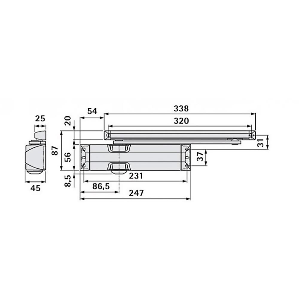 Amortizor hidraulic cu glisiera, forta 2-4, pentru usi 20-80Kg