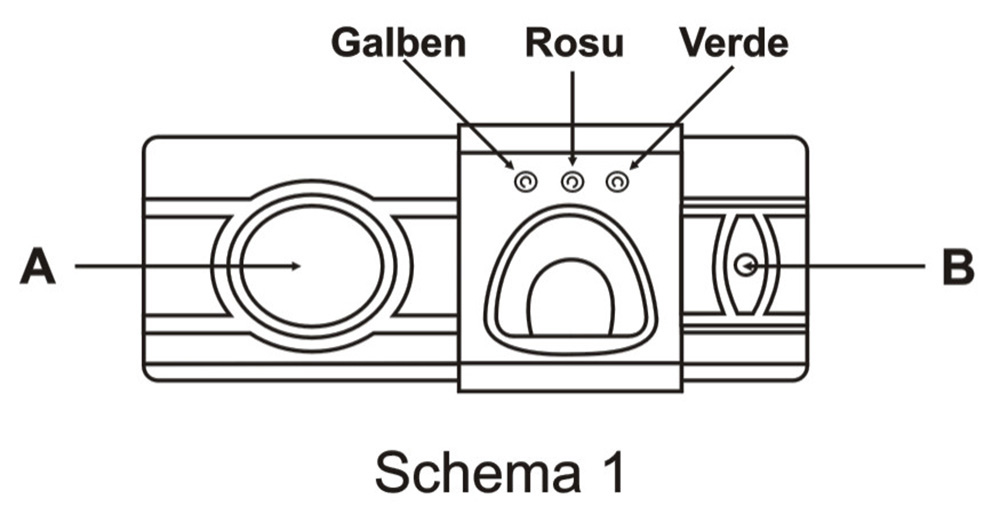 INSTRUCTIUNI PENTRU SEIFURI BIOMETRICE PRECAUTII : Nu pastrati cheile in seif. 1. DESCHIDEREA SEIFULUI PENTRU PRIMA DATACind deschideti seiful prima data, indepartati placuta centrala ‘A’ (vezi schema 1) de pe panoul frontal, introduceti cheia si rasuciti in sensul acelor de ceasornic pentru a deschide usa. Instalati bateriile cum se descrie le punctul 2. 2. INSTALAREA BATERIILOR Seiful are nevoie de 4 baterii AA 1,5V. Este recomandata folosirea bateriilor alkaline. Compartimentul pentru baterii ( vezi schema 3) este situat pe spatele usii. Indepartati capacul si introduceti bateriile asigurandu-va ca ati potrivit corect polaritatile (+ si -). Inchideti compartimentul bateriilor. Inchdeti usa seifului si rasuciti cheia in sens invers acelor de ceasornic pentru a-l incuia. Pentru a deschide usa seifului apasati butonul ‘B’ (vezi schema 1). Becul galben se va aprinde. Puneti orice deget pe cititorul de amprenta si asteptati 10 secunde. Veti auzi un sunet (beep), becul verde se va aprinde iar usa se va deschide automat. Apasati butonul ‘B’ si seiful se va inchide automat. Orice deget va deschide usa seifului pana cand se va programa o amprenta (vezi punctul 3). Este recomandat sa programati o amprenta in memoria seifului inainte de a utiliza seiful.