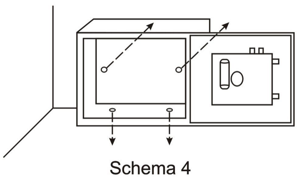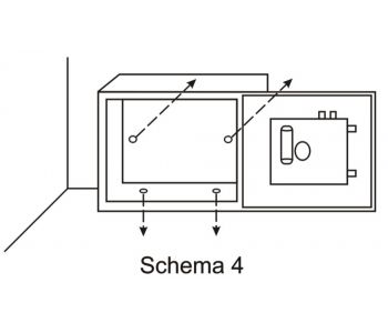 - Pentru a mari rata de identificare a amprentei, va recomandam sa inregistrati acelasi deget de 3 ori in 3 unghiuri diferite ( vezi schema 2). - Sugeram sa inregistrati doua sau mai multe degete pentru cazul in care un deget poate fi accidentat. - Pentru a evita eroarea de citire a amprentei, va recomandam sa spalati degetul inainte de a-l pune pe geamul panoului. Pastrati geamul panoului curat si ferit de grasimi si umezeala. - Intotdeauna tineti degetul nemiscat cand se inregistreaza sau se citeste amprenta. - Degetul mic nu este recomandat pentru amprenta identificatoare. - Intotdeauna pozitionati seiful astfel incat geamul panoului de citire sa fie ferit de lumina directa a soarelui. 4. FOLOSIREA SEIFULUI A. Inchiderea seifului: Se inchide usa si se apasa butonul ‘B’ (vezi schema 1). Usa va fi blocata automat. B. Deschiderea seifului: Se apasa butonul ‘B’, becul galben se va aprinde. Puneti degetul pe cititorul de amprenta timp de 10 secunde, daca amprenta este recunoscuta veti auzi un sunet (beep), becul verde se va aprinde si usa se va deschide automat. 5. INLOCUIREA BATERIILORBateriile trebuie inlocuite daca becul rosu (de pe panoul frontal) clipeste in timpul utilizarii. Este recomandat ca bateriile sa fie inlocuite periodic. Pentru a inlocui bateriile, repetati pasii mentionati la punctul 2 si asigurati-va ca potriviti corect polaritatea bateriilor. NOTA: Chiar si fara baterii, amprenta inregistrata va fi citita. 6. INSTRUCTIUNI SUPLIMENTARE PENTRU DESCHIDEREA SEIFULUI Pentru usurinta in utilizare, seiful este prevazut cu un sistem suplimentar de deschidere manuala. In caz de urgenta, indepartati placuta ‘A’ de pe panoul frontal (vezi schema 1), introduceti cheia si rasuciti in sensul acelor de ceasornic. Astfel seiful dumneavoastra poate fi deschis oricand manual. PRECAUTII: Nu tineti cheile in seif. 7. STERGEREA AMPRENTELOR INREGISTRATE Cu usa seifului deschisa, apasati de 3 ori butonul rosu ‘C’ de pe interiorul usii ( intervalul dintre apasari trebuie sa fie de 5 secunde). Veti auzi un sunet (beep) lung si becul verde se va aprinde. Acest lucru inseamna ca toate amprentele inregistrate au fost sterse si unitatea a revenit la statutul original ( orice deget poate deschide seiful). 8. INSTALAREA SEIFULUIPentru a reduce riscul furtului, seiful poate fi prins de podea, de perete sau incastrat in mobila. Pentru a face usoara montarea, in seif exista gauri pe partea din spate si pe partea de jos, care va vor ajuta sa-l fixati utilizand holsuruburile pe care le gasiti in punguta din interiorul seifului (vezi schema 4). Va rugam verificati ca exista gaurile de fixare la seif.