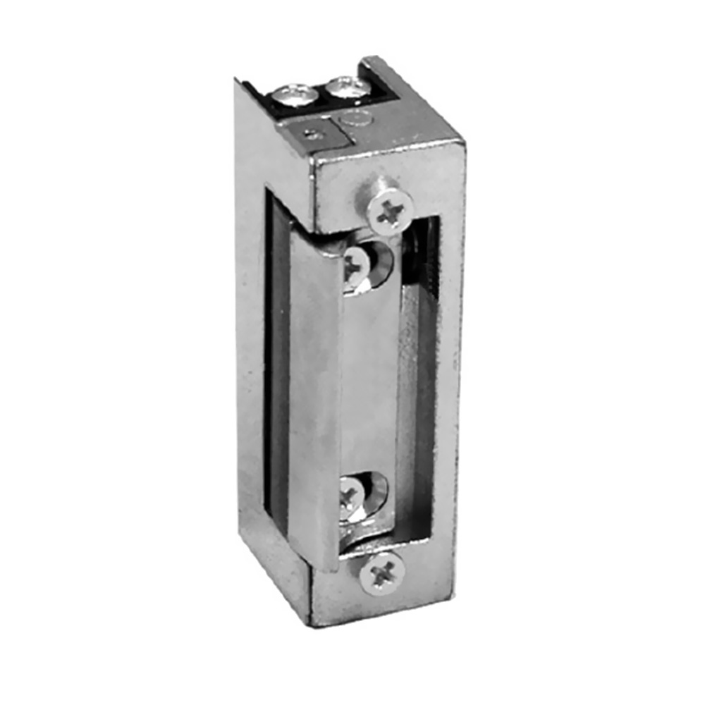 ZAVOR ELECTRIC - NORMAL DESCHIS - FARA MEMORIEFara parghie de deblocare.Zavorul este mentinut blocat (inchis) prin alimentarea permanentade la sursa de curent electric. Se deblocheaza (se deschide)numai pe durata intreruperii curentului electric.Lungime: 67 mm. Model reversibil si simetric. Zavor ajustabil 3mm.Adaptabil pentru toate fronturile JIS.. Consum: 0.27 A.Tens. alimentare 12V curent continuu. INSTRUCTIUNI UTILIZARE ZAVORModelLlHTens.si curent de alimentareDescriere14436716.528.512Vac1.08ANorm.inchis,reversibil si simetric, latime ajustabila, cu memorie si deblocare mecanica,pt.Al/PVC,cu platbanda 909G/ 910G17116720,528.512Vcc,0,27ANorm.deschis,reversibil si simetric, latime ajustabila,cu platbanda 901G/X / 904G/X17206720,528.512Vac1 ANorm.inchis,reversibil, simetric, lat.ajustabila si deblocare mecanica, cu platbanda 901G/X, sau 904G/X17436720,528.512Vac1 ANorm.inchis,cu memorie si deblocare mecanica,reversibil si simetric, latime ajustabila,cu platbanda 901G/X / 904G/X Mod. 1443,1743,1720: Zavorul nealimentat se afla in poz. inchis. La Mod. 1443 si 1743, dupa impulsul electric zavorul se declansaza (in poz. deschis), pastrand aceasta stare chiar dupa incetarea impulsului electric, datorita memoriei. Odata cu deschiderea propriu-zisa a usii, sistemul se relanseaza si zavorul trece in poz.inchis. Mod.1720 se mentine in poz. deschis doar cat este aplicat impulsul electric temporizat.Parghia mecanica trece zavorul in starea deschis, indiferent de stadiul de alimentare, in acest caz usa avand regim de liber acces.Mod. 1711: Zavorul nealimentat se afla in poz. deschis. Este mentinut in pozitia inchis alimentat in permanenta cu o sursa de curent continuu de 12V. Zavoarele permit cca. 250000 cicluri de deschidere.