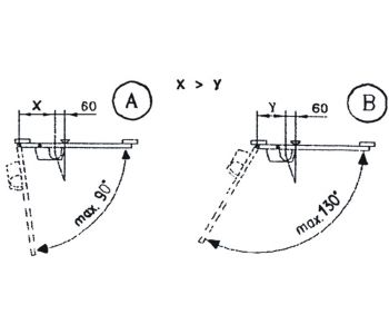 4. MARCAREA ORIFICIILOR DE PRINDEREMarcarea se face numai cu ajutorul sablonului de montaj.Inainte de a marca gaurile de prindere, decideti daca usa se va deschide intr-un unghi de 90 grade (A) sau peste 90 grade (B) - vezi sablonul. In functie de acest lucru aplicati sablonul peusa si marcati locurile pentru gaurire, pentru a prinde amortizorul si bratul. Pentru a preveni deteriorarea amortizorului in cazul deschiderii usii peste 90 grade (montaj pozitia A) sau 130 grade (montaj pozitia B) daca este necesar, se va monta un limitator de deschidere a usii (opritor).