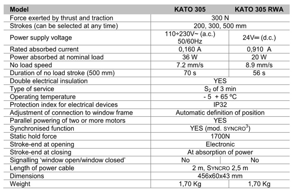 Caracteristici:Alimentare: 24 VForta impingere si tragere: 300NCursa reglabila prin intermediul microswitch-ului de pe carcasa: 200,300,500 mm.Normativa EN12101-2:2003-09Clasificare B300