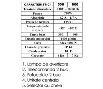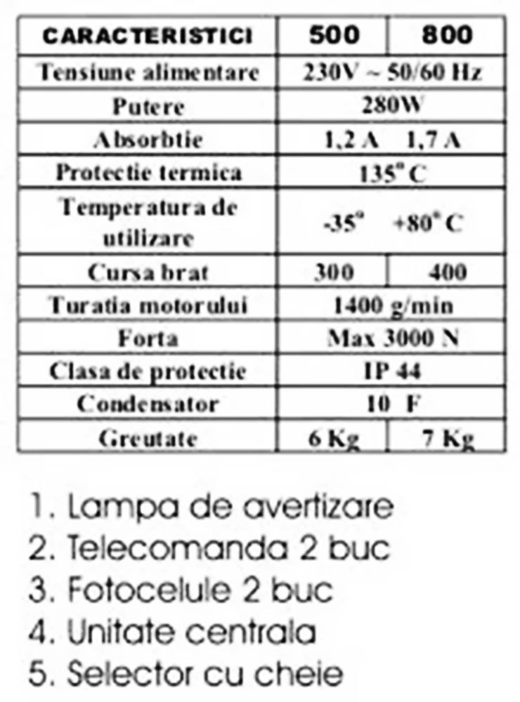 lung. Max. 2600 mm, sursa 220V; Putere motor 280W; cursa 400mm. (porti batante)