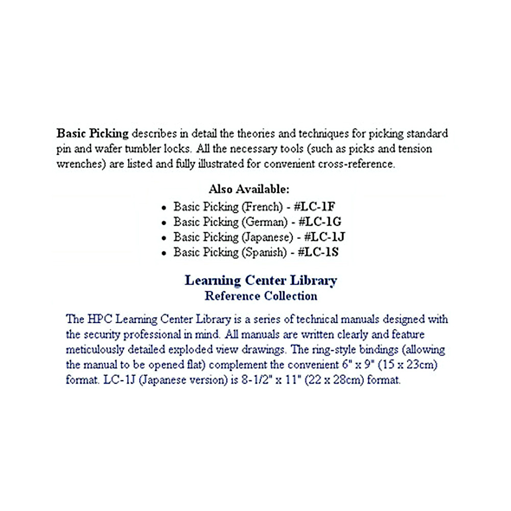 carte "Basic pick" - informatii primare pt. deschidere cilindru cu disc rotitor