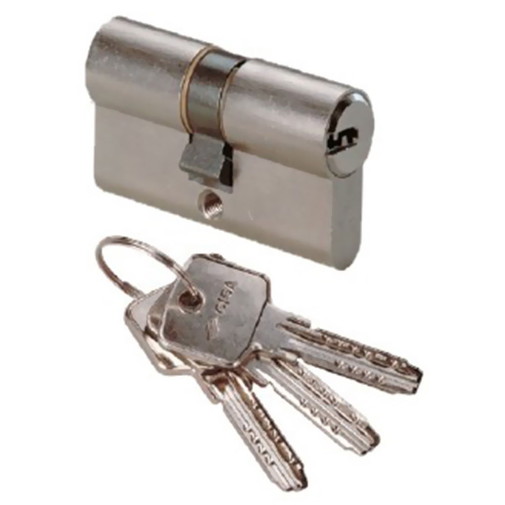 EuroCilindru simetric, antidrill, antişperaclu, cama DIN, nichelat, chei amprentă