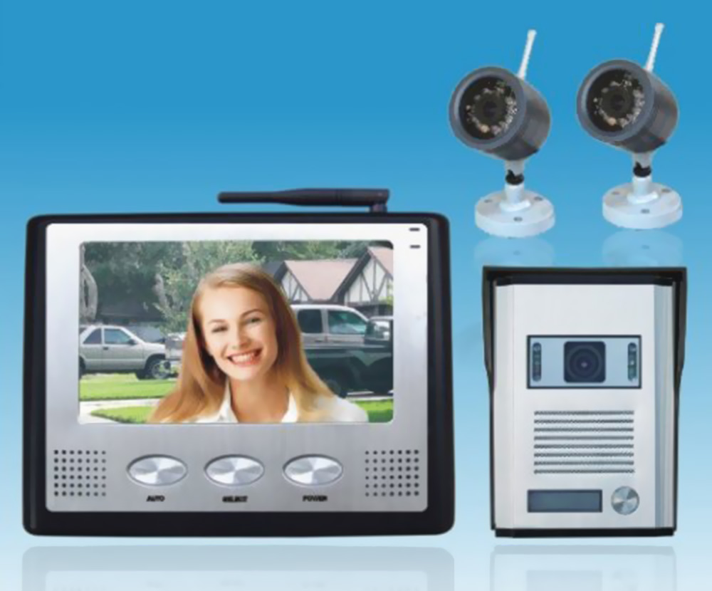 Kit videointerfon color cu 2 camere de supraveghere, wireless 2,4 GHz, TFT 7??, CCD