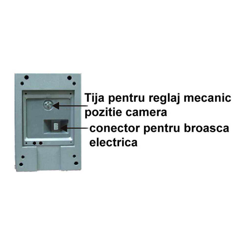 * Distanta pe timp de noapte (camera videointerfon,interfon): mai mult de 4 m * Control PLUS: automat * Temperatura de lucru : -5grdC -- +40grdC * Rezolutie camera CCD: ~ 420 linii TV * Dimensiuni FATA unitate externa: 108x157x46 mm Dimensiuni SPATE unitate externa( partea care se ingroapa in zid): 101x149 28mm Camerele de supraveghere video: