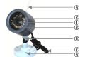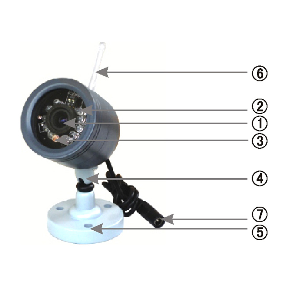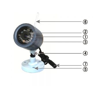 1. Camera propriu-zisa2. Leduri infrarosu pentru vedere pe timp de noapte3. Fotorezistenta pentru comutatie zi/noapte4. Suport camera5. Gauri de fixare suport6. Antena7. Fir cu mufa de conectare a camerei la tensiunea de alimentare Dispozitiv, interfata pentru comanda broastei electrice: