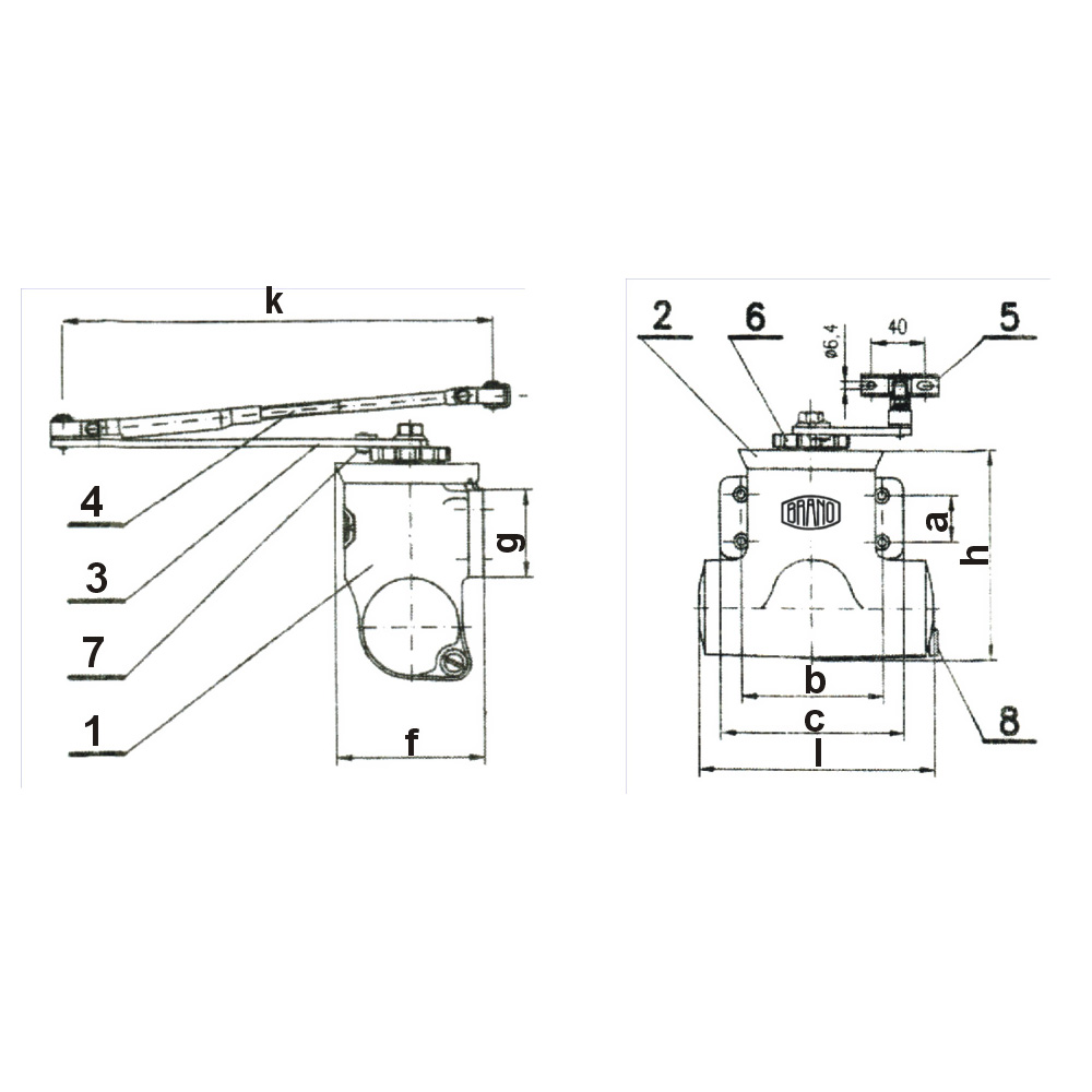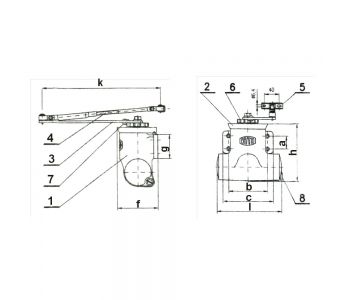 8. REGLAREA PUTERII DE INCHIDERESe ajusteaza puterea de inchidere a usii prin rotirea surubului de ajustare nr.8. Daca semnul central “a”din capatul surubului este in pozitia din figura de mai sus, lovitura usii este minima, rasucind catre stanga lovitura usii creste.Inchiderea usii poate fi ajustata de asemeni prin reglarea lungimii bratului. Pentru aceasta se scoate saiba elastica 9 pentru a elibera bratul 4 din articulatie. Lovitura usii devine mai puternica prin desurubarea (lungirea) bratului si descreste prin insurubarea (scurtarea) lui. A se vedea figura urmatoare: