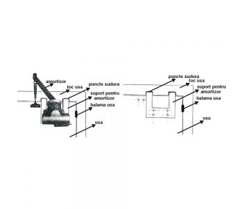 2. SCHIMBAREA AMORTIZORULUI DE PE STANGA PE DREAPTA:Pentru schimbarea de pe stanga pe dreapta, urmati indicatiile:- demontati bratul nr.3- scoateti roata tricheta nr.6- scoateti capacul prin lovire usoara- scoateti arcul si puneti-l in pozitie inversa (prin rasturnare) astfel incat capatul indoit sa intre in degajarea “X” din partea superioara a capacului.La usile pe stanga balamalele sunt vizibile in stanga, iar la cele pe dreapta sunt vizibile in dreapta.