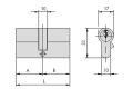 Caracteristici tehnice:- Cilindru dublu - sistem cheie cu 6 pini- corp de alama- rotitor de alama - cama DIN, din otel sinterizat cu auto-ungere- pini: (in rotitor)- bronz rezistent la uzura - din otel tratat primul pin- bile laterale din otel inox- driveri : (in partea fixa a corpului cilindrului)- din alama, cilindrici si tip ciuperca pentru functia antisperaclu - din otel tratat primul pin- arcuri din bronz fosforosCHEI:- din aliaj nichel-argint- numerotate pe capul cheii- 3,2 mm. grosime- 0,5 mm. adancimeDotare:- suruburi de fixare- instructiuni de utilizare si intretinere- 3 chei co CISA 1.00450.01.0- Cartela cu codul cheiiLa cerere:- KA, MK- STANDARD: alama nichelata (fin. 12)- LA CERERET: alama lucioasa (fin. 66)Standarde:In conformiotate cu:- EN 1303: grad 6 Durabilitate, grad 3 Securitate - DIN 18254 (ref. DIN EN 1303)