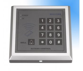 Tensiune: 12VCCAmperaj in sarcina: <1000mAAmperaj static: <60mAMemorie: 250 utilizatoriDistanta de citire: max 10cmTip card: EMTemperatura de functionare: -10 C - +70 CUmiditate: 10% - 90%Dimensiuni: 117 x 117 x 21mmInstalareDemontati cadrul din spate al sistemului si prindeti-l pe perete cu dibluri si holsuruburi. Conectati alimentarea si incuietoarea electrica conform schemei de mai sus. Daca cerintele impun instalarea unui buton interior de deschidere a usii sau conectarea unei sonerii acestea se vor conectade asemenea conform schemei de mai sus. Atentie. Demontarea cadrului din spate cu alimentarea deja conectata va activa butonul de alarma cu arc aflat in partea stanga jos, pornind alarma de avertizare a sistemului. Inainte de conectare asigurati-va ca alimentatorul furnizeaza tensiunea ceruta.Initializarea sistemuluiCu alimentarea oprita, conectati pinii 2 si 3 ai switchului S16. Alimentati. Sistemul va emite bipuri lungi iar led-urile rosu (power), verde (OK) si portocaliu (mod) vor clipi.Opriti si apoi reporniti alimentarea cu curent. Toate led-urile vor clipi. Comutati switch-ul S16 de pe pozitia 2-3 pe pozitia 1-2. Initializarea e completa. Important: Initializarea doar modifica parola de sistem cu parola implicita (12345). Lista de utilizatori si preferinte ramane neschimbata. Conectarea inchizatorii electrice/electromagneticeIn functie de natura inchizatorii folosite (Normal Deschis sau Normal Inchis) este necesara configurarea switch-ului J1 astfel: Pin1 cu Pin2 – inchizatoarea este alimentata in starea de repaos a sistemului. La activarea cu card sau cod, alimentarea inchizatoarei se intrerupePin2 cu Pin3 – inchizatoarea este alimentata doar la activarea cu cartela sau cod. In starea de repaos inchizatoarea nu este alimentata.Configurarea sistemuluiIntrarea in mod programare - Se apasa tasta # (toate ledurile se aprind) urmata de parola de sistem din 5 cifre (12345 – default). Sistemul va confirma intrarea in modul programare printr-un bip simplu. Dupa intrarea in mod programare se selecteaza optiunea dorita (tastele de la 0 la 6). Semnificatia acestora este: Tasta 0 (Inregistrare card utilizator SI parola)Ledul portocaliu aprins.Tastati un numar de utilizator din 4 cifre (Ex. 0001)Scanati cardul nou. Operatia de scanare este confirmata printr-un bip simplu.Introduceti o parola utilizator din 6 cifre. Operatia va fi confirmata printr-un bip lung. Ledurile rosu si portocaliu raman aprinse. Iesire din meniu cu tasta 6 sau automat dupa un delay de 5 sec. Atentie: Un utilizator inregistrat in sistem cu ajutorul tastei 0 va fi obligat atat sa scaneze cardul cat si sa introduca parola pentru a deschide usa. Pentru a-i da unui unei persoane posibilitatea de a deschide usa ori cu cardul ori cu cartela este necesara inregistrarea dubla a acestei persoane (o inregistrare pt card si o alta pt parola, folosind tasta 2) Tasta 1 (Modificare parola sistem)Ledul portocaliu aprins.Tastati o noua parola din 5 cifre. Operatiunea este confirmata printr-un bip scurt, LED-ul verde clipeste. Ledurile rosu si portocaliu raman aprinse. Iesire din meniu cu tasta 6 sau automat dupa un delay de 5 sec.Important: Pastrati parola de sistem intr-un loc sigur. In cazul in care pierdeti parola va trebui sa reinitializati sistemul. Tasta 2 (Inregistrare card utilizator SAU parola)Ledul portocaliu aprins.Tastati un numar de utilizator din 4 cifre (Ex. 0001) Ledul verde aprins semnifica faptul ca numarul de utilizator este valid. 3 bip-uri scurte semnifica faptul ca acest numar de utilizator este deja introdus in sistem. 4 bip-uri lungi semnifica faptul ca memoria sistemului este plina.Scanati cardul nou sau introduceti o parola de 6 cifre a utilizatorului (pentru a adauga atat card cat si parola pentru un utilizator vedeti instructiunile de mai sus – tasta 0)Operatiunea este confirmata printr-un bip scurt, LED-ul verde clipeste. Ledurile rosu si portocaliu raman aprinse. Iesire din meniu cu tasta 6 sau automat dupa un delay de 5 sec. 3 bip-uri lungi semnifica faptul ca parola aleasa sau cardul citit sunt deja inregistrate in sistem. Tasta 3 (Stergere utilizator)Ledul portocaliu aprins.Tastati un numar de utilizator din 4 cifre (Ex. 0001)Operatiunea este confirmata printr-un bip lung. Tasta 4 (Stergere toti utilizatorii)Operatiunea este confirmata printr-un bip lung, LED-ul verde clipeste. Ledurile rosu si portocaliu raman aprinse. Tasta 5 (configurare temportizare 0-99sec)Ledul portocaliu aprins.Tastati o valoare din 2 cifre reprezentand timpul in secunde cat doriti ca usa sa ramane deschisa. LED-ul verde clipeste. Ledurile rosu si portocaliu raman aprinse. Tasta 6 (Exit)Confirmare iesire printr-un bip lung. Led-ul verde clipeste si se stinge. Ledul portocaliu se stinge. Led-ul rosu ramane aprins si sistemul iese din modul programare in modul normal de functionare Important. Daca in timpul programarii apare o eroare (utilizator existent, parola existenta, etc) sau nu sunt respectate instructiunile de mai sus, sistemul va emite o alerta din 3 bip-uri lungi si se va intoarce in modul normal de functionare. Daca sistemul emite o alerta sonora formata din 5 seturi de cate 2 bipuri lungi si unul scurt inseamna ca memoria este plina. UtilizarePentru utilizatorii adaugati in modul card SAU parola (tasta 2) accesul se va face prin apropierea cardului de cititor sau prin introducerea parolei de 6 cifre a utilizatorului. Daca parola sau cardul sunt valide sistemul va confirma acest lucru printr-un bip lung. Ledul verde se aprinde si usa se deschide. Usa ramane deschisa conform timpului de deschidere configurat. Daca parola sau cardul sunt invalide, sistemul va emite o alerta sonora formata din 3 bip-uri scurte iar led-ul rosu va clipi de 3 ori. Pentru utilizatorii adaugati in modul card SI parola (tasta 0 din meniul sistemului) este necesara atat scanarea cardului cat si introducerea ulterioara a parolei de 6 cifre (sau invers, introducerea parolei urmata de scanarea cardului). Daca atat parola cat si cardul su