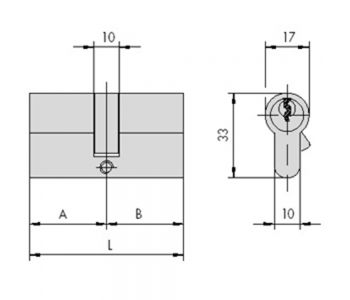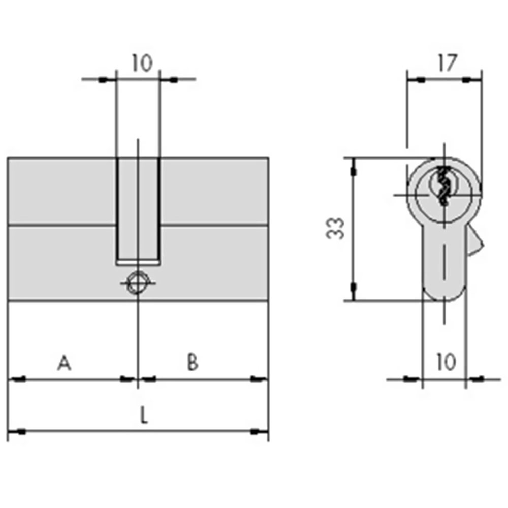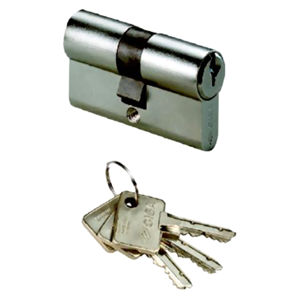 Caracteristici tehnice: - Cilindru dublu - sistem cheie cu 6 pini - corp de alama - rotitor alama - cama DIN din otel sinterizat, cu autoungere - pini: (in rotitor) - din bronz rezistent la uzura - din otel tratat pentru primul pin - bile laterale din otel inox - driveri: (in partea fixa a corpului cilindrului) - din alama, cilindrici si tip ciupercapentru functia antisperaclu - otel tratat pentru primul pin - arcuri din bronz fosforosCHEI: - aliaj nichel, argint - numerotate pe arcada cheii - 3,2 mm. grosime - 0,5 mm. adancimeCHEILE POD FI DUPLICATE NUMAI DE CISA SI DE CENTRELE AUTORIZATE DE CISADotare standard: - Suruburi de fixare - Instructiuni de utilizare si intretinere - 3 chei cod CISA 1.00500.01.0 - CARTELA SECURITATELa cerere: - Cheie KA, MK, - STANDARD: alama nichelata (fin. 12), - LA CERERE: alama lacuita (fin. 66)