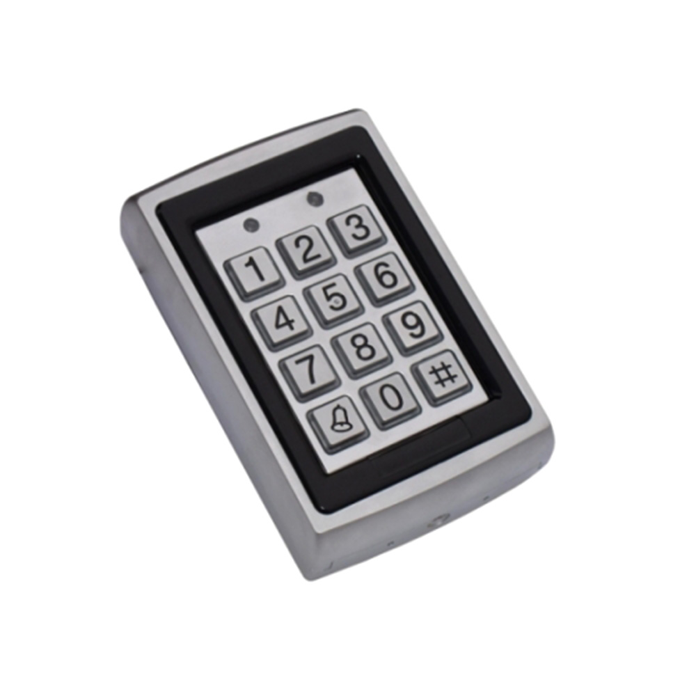 Controler/Cititor de proximitate cu tastatura pentru exterior, stand-aloneAlimentare: 12 VccConsum: Standby 40mA, Max 130mADimensiuni: 120 x 76 x 27 mmCapacitate: 500 de utilizatoriDeschidere cu cod, cartele sau taguri EM, 125KHzDistanta de citire: 6cmMaterial: carcasa solida din metalAlte caracteristici: 2 relee, led, buzzer, buton de sonerie incorporate, rezistent la apa